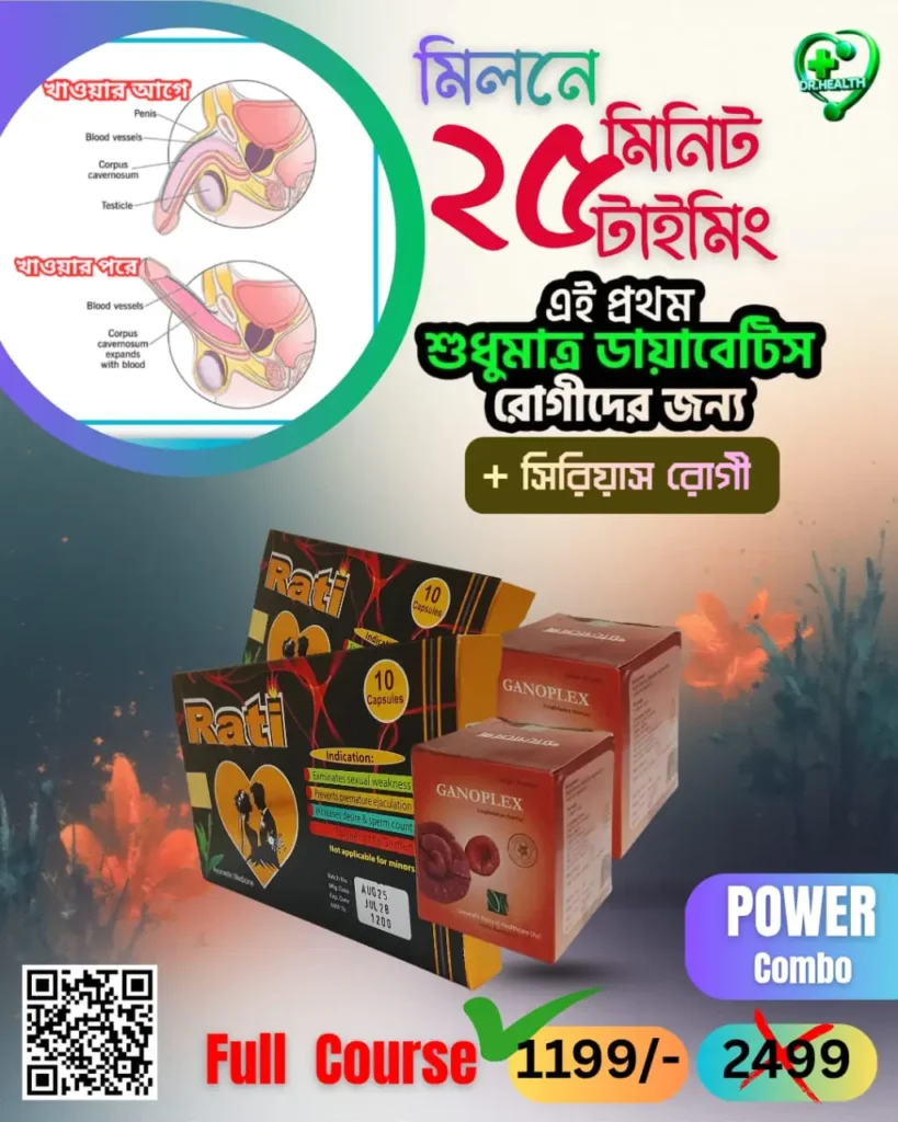 - Rati(২০পিছ), উত্তেজনা বৃদ্ধি করে, লিঙ্গ মোটা করে।সহবাসে টাইমিং প্রচুর লং করে। ৩দিন পর পর রাতে ১টি।